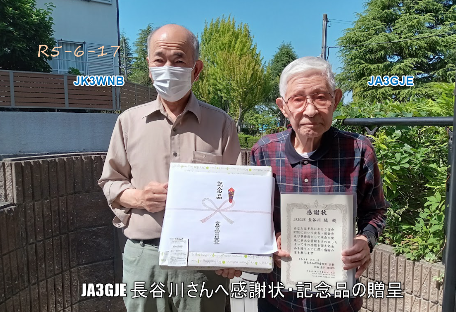 JA3GJE 長谷川元会長へ感謝状と記念品
