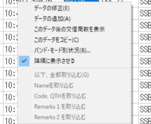 降順と昇順 表示切替え/TurboHAMLOG
