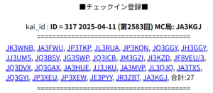 RC 第2583回 MC局 JA3KGJ
