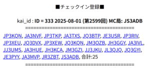 RC 第2599回 MC局: JS3ADB
