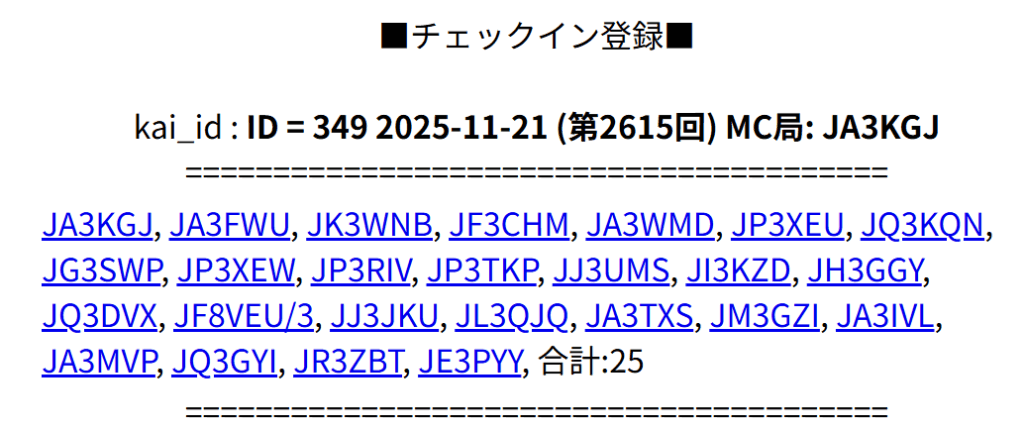 RC 第2615回 MC局: JA3KGJ