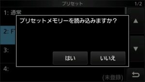 ここで、その青い部分をタップしますと、画面に、「プリセットメモリーを読み込みますか?」と表示されます。
