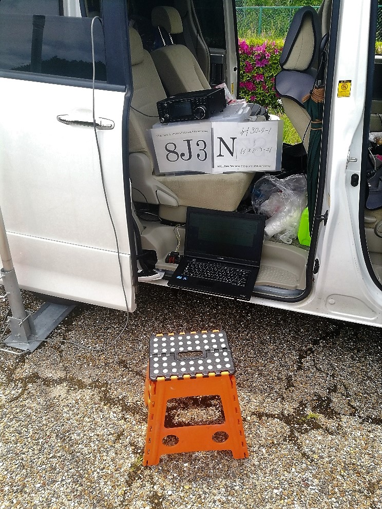 JJ3HYNとJH3QCOが中心となって無線機・アンテナ等を設営後、7MHz帯での交信を楽しみました。北は岩手県から西は山口県までの各局からお声がけをいただきました。時間の制約があり、あまり多くの局とは交信ができなったのが残念でした。