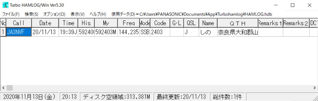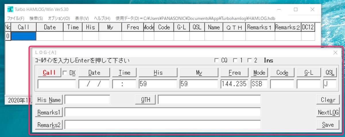 2020-11-13 セットアップ/TurboHAMLOG v5.30