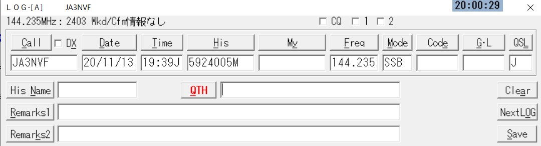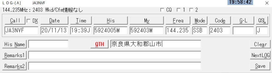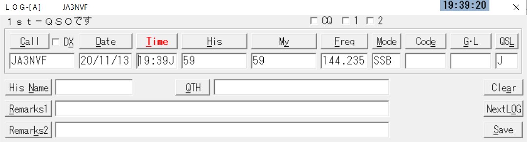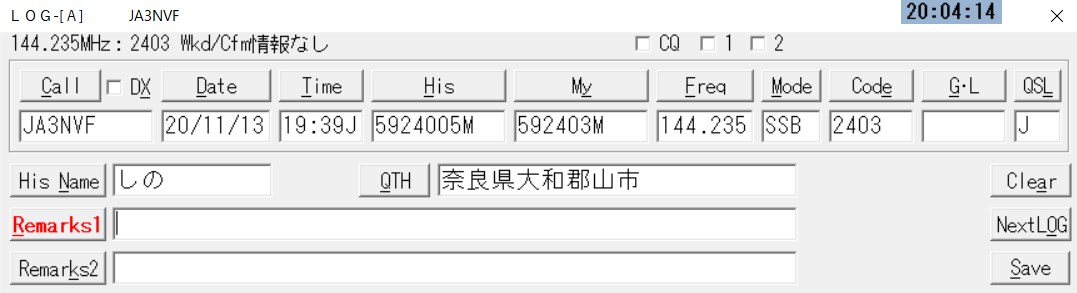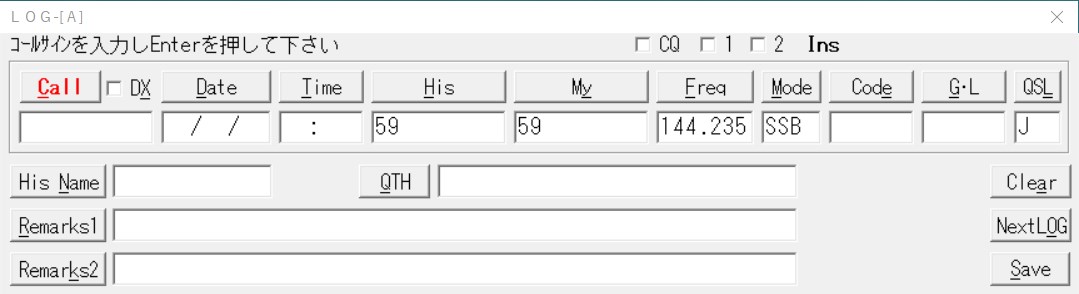 上図のように、コールーサインを入力したら、入力ウィンドウの左上にも案内表示があるように、必ず、[ Enter ] キーを押下します。