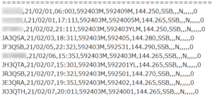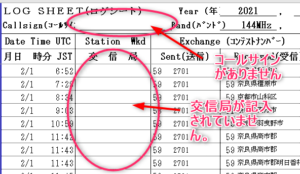 ハムログから抽出したと思われる様式のCSVテキストファイルを、そのまま添付して送信されている例です。