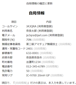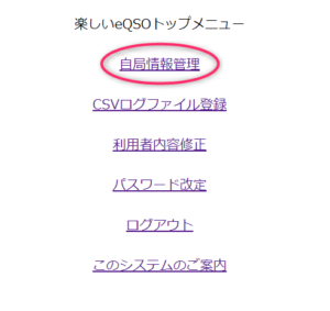 直接申請では、システムにログイン後、以下の、自局情報の登録が必須です。