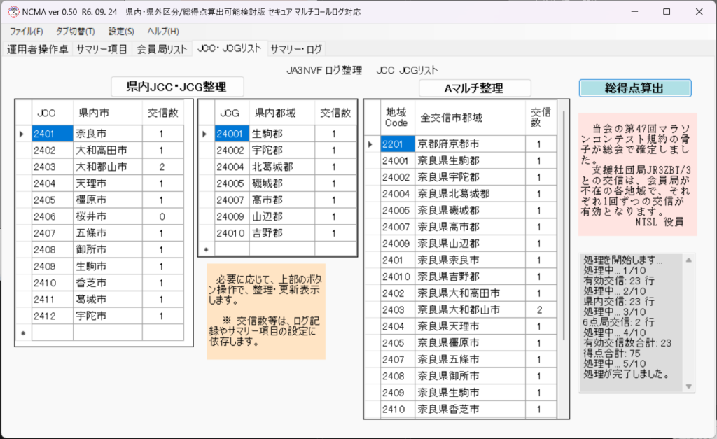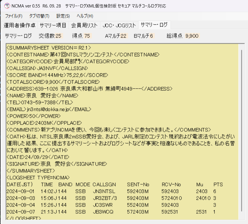 R6-09-28 JARL準拠サマリー・ログシートの調整中/NCMA
