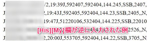 - TurboHAMLOGの入力時、[His], [My]の欄を取り違えて入力されている場合