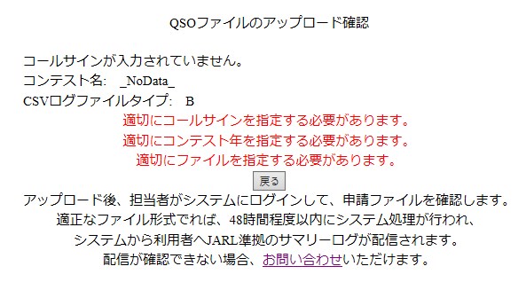 - コンテストナンバーが不適切な場合。当コンテスト規約では、市・郡のみが有効な所在地番号です。ハムログ用の、例えば、24001A は、奈良県生駒郡安堵町となりますので、適切な採点となりません。