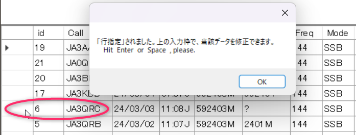 Uncategorized 3月 6 2024 記録済交信録の修正・更新 / NCMA戻る・Back NCMAの機能として、すでに記録保存されている交信記録について、 表示行の左端を選択指定することにより、当該レコードを修正して、更新できる機能が企画されています。 Ed 0 コメント
