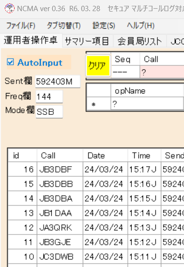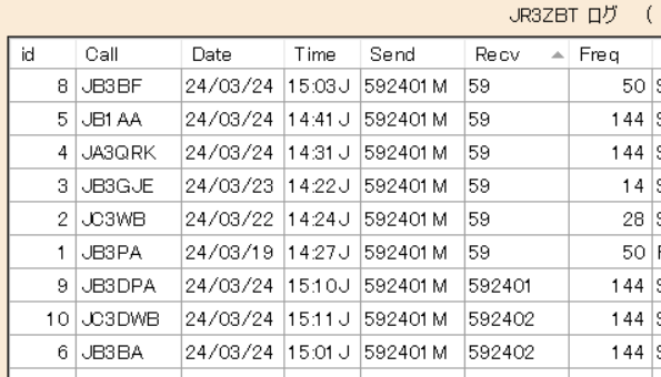 NCMA の運用者操作卓でログは、交信日・交信時分の降順で表示されるように企画しています。