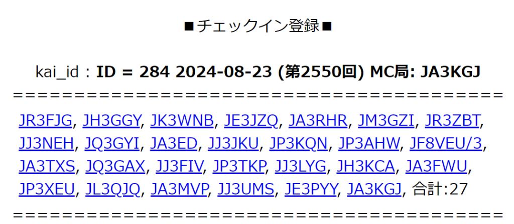 RC 第2550回 MC局: JA3KGJ