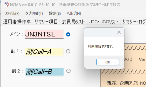 実際の利用に先立って、運用者のコールサインをNCMAに登録します。