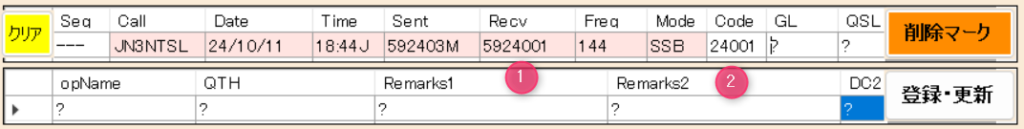 Uncategorized 10月 11 2024 相手コンテストナンバーとQTH/NCMAログの入力では、①のエリア文字列と、②の欄で、JCCまたはJCGの数値文字列が一致している必要があります。 ①と②が不一致のレコードは、NCMAによる採点時に選択されません。 ※ NTSLのコンテストでは、ハムログエリア記号は使用しません。 ※ また、「区」を区別する文字列は入力しません。 Ed 0 コメント