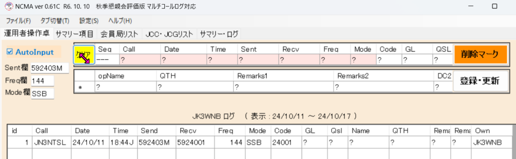 クリアボタンで、入力枠の値をすべてクリアできます。