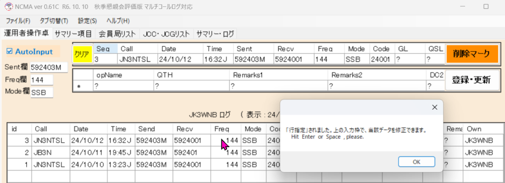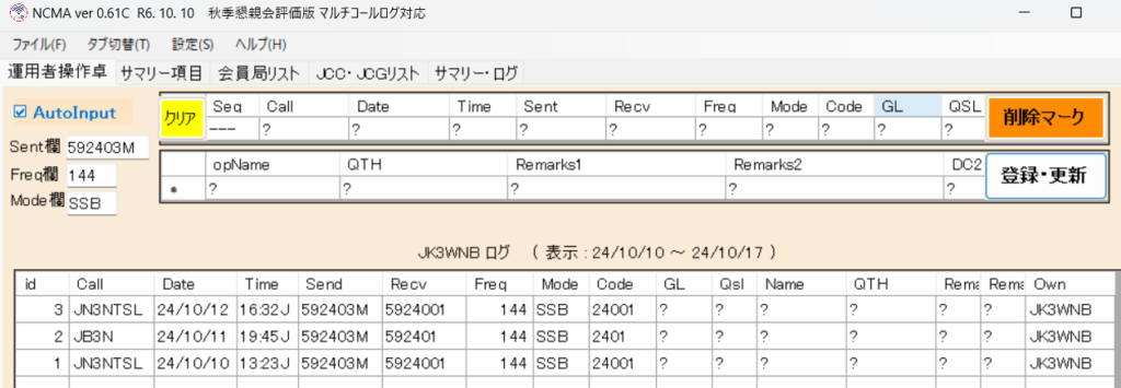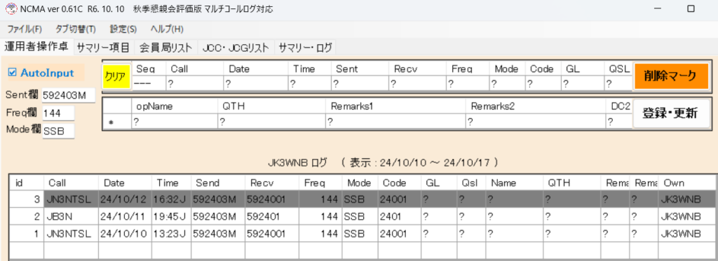 ただし、一つの個人局が期間中、複数の交信を認めない規約ですから、この状態では、明らかに規約に反しているので、得点計算を実施しても、サマリー・ログを作成して提出すると、審査過程で受理されません。