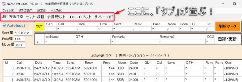 NCMAは、メニューによる機能の他、タブページを切り替えて、それぞれの表示や機能を利用できます。
