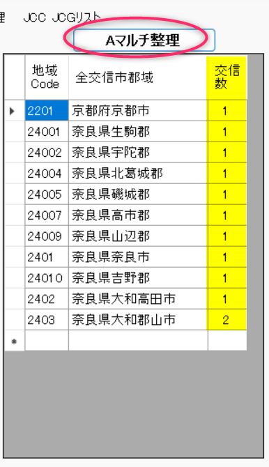 NCMA 10月 11 2024 Aマルチ整理/NCMA県内・県外を問わない、異なる市郡の交信数を得るために、以下のAマルチ整理機能が用意されています。 整理前の画面は、以下です。 整理作業のため、上部の「Aマルチ整理」ボタンをクリックすると、即座に整理結果が表に記入されます。 上の場合では、Aマルチ= 11 になっています。 JCCやJCGの文字列コード昇順に整理・表示されます。 Ed 0 コメント