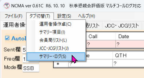 タブ切り替え Menu/NCMA