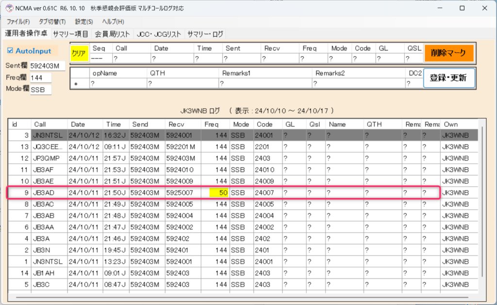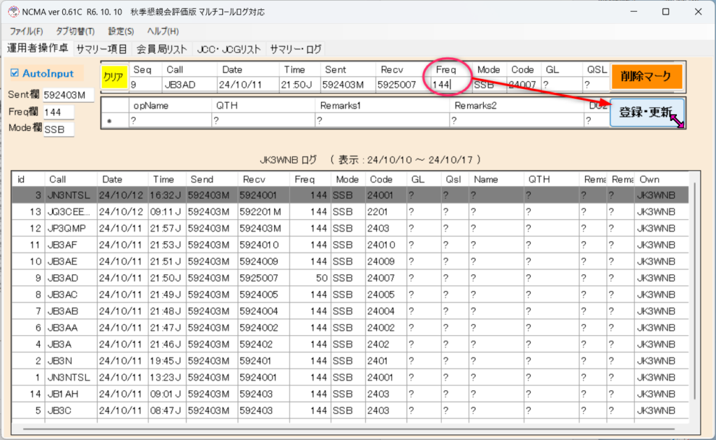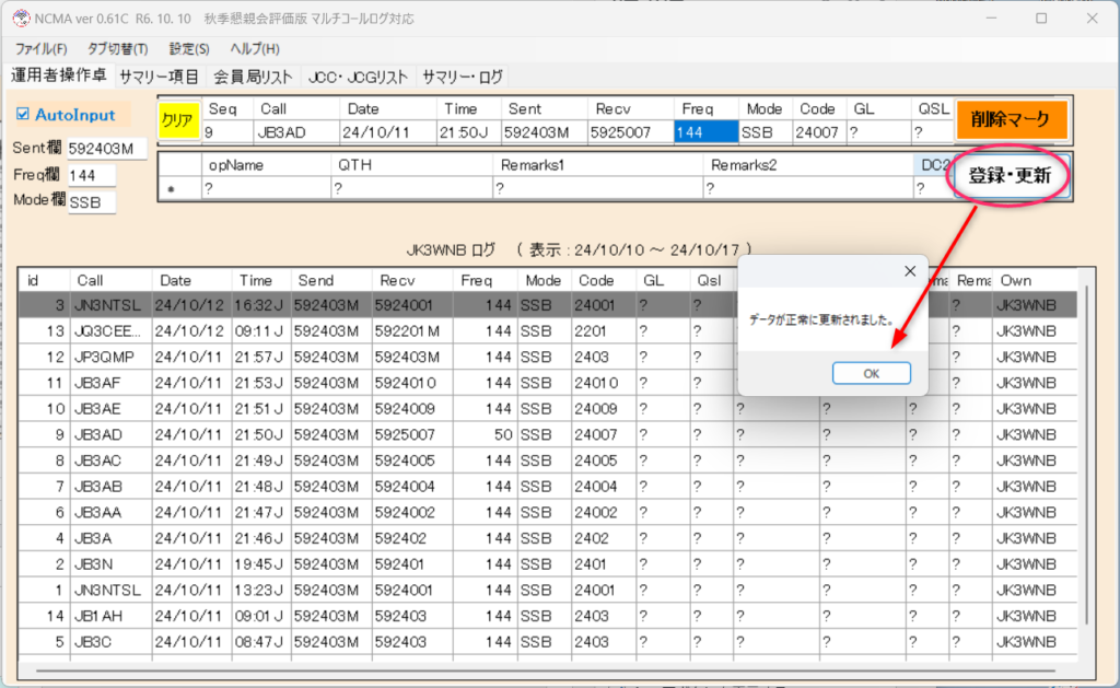 - 必要なら再度「登録・更新」ボタンをクリックして、ログリストの表示を更新する。