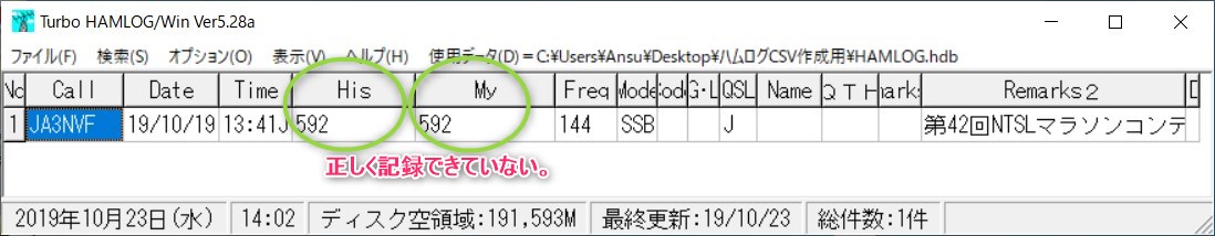 Hisの欄 592403M (相手局:大和郡山市内運用の会員局)