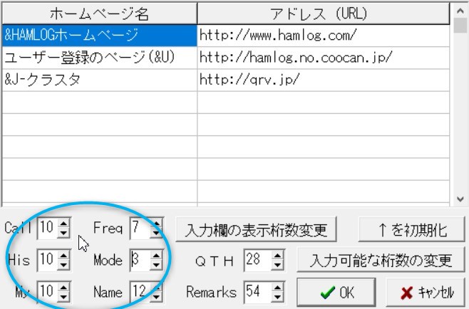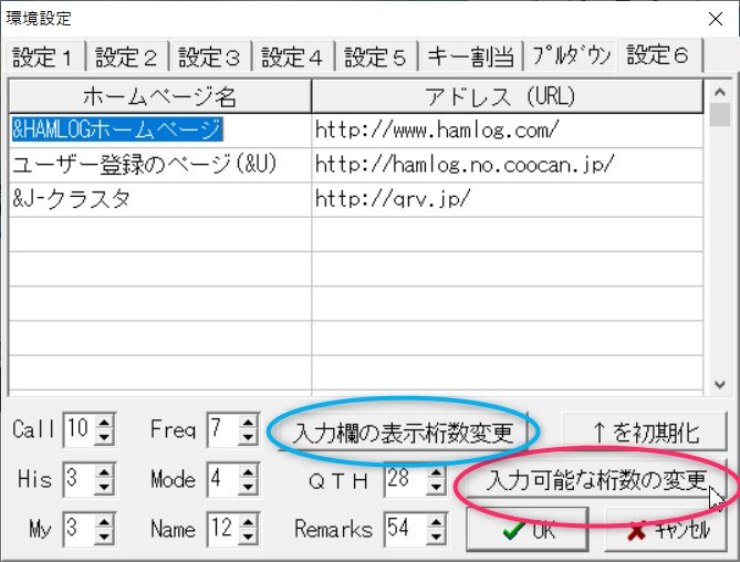 赤で強調した、[入力可能な桁数の変更]、[入力欄の表示桁数変更]を操作します。