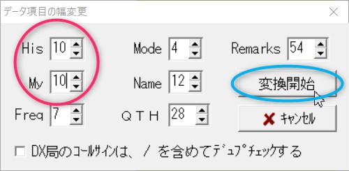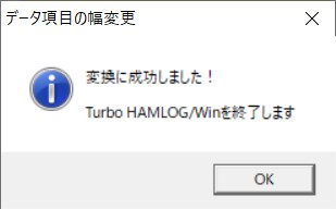 正常に変換処理が済むと、以下の注意があったのち、一旦ハムログは終了します。