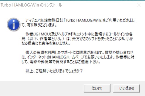 インストールの開始を聞いてきますので、「はい(Y)」をクリックします。