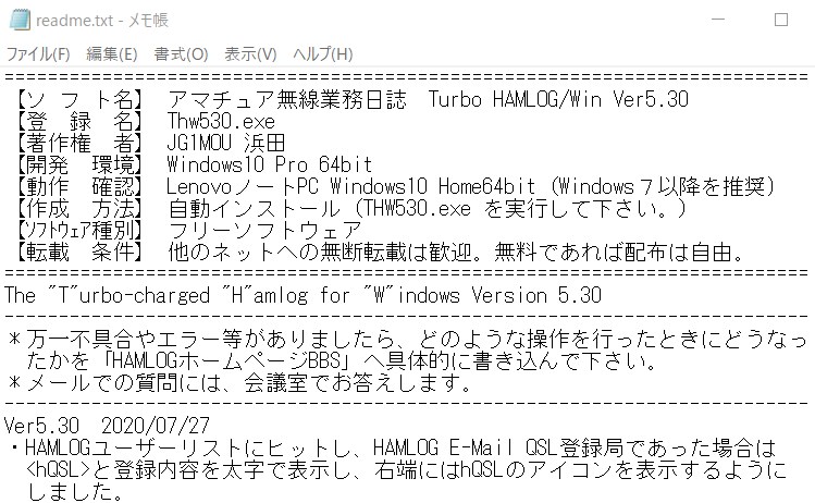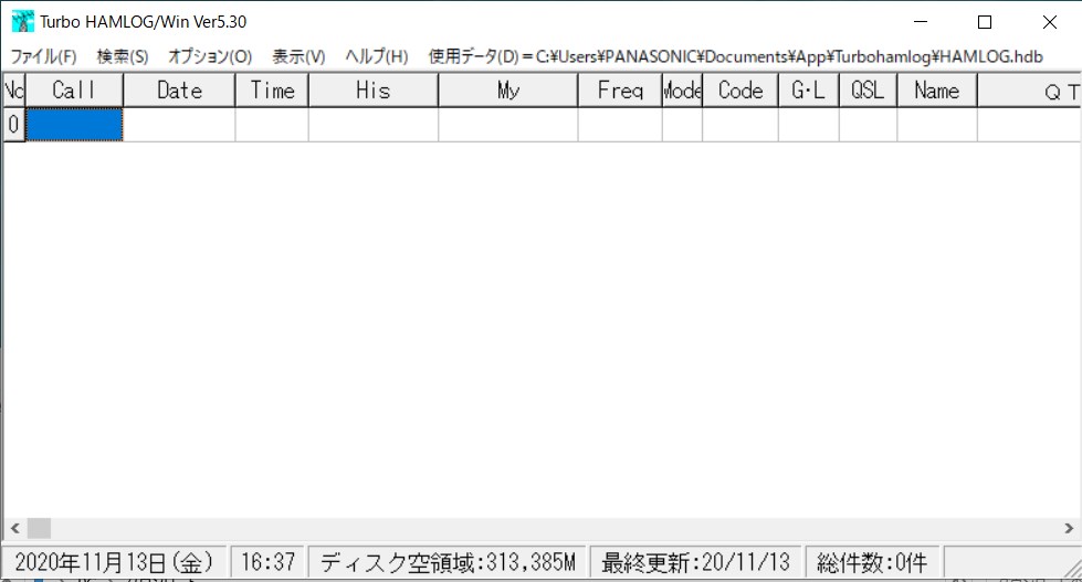 アイコンをクリックすると、初期のハムログの表が表示されて、使用できる環境を確認できます。