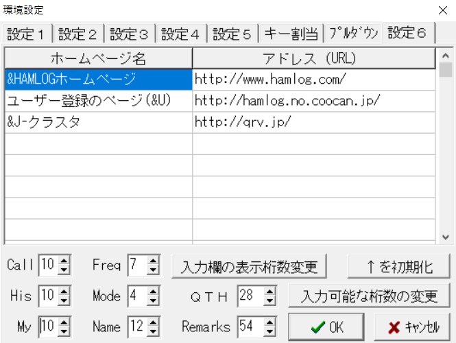 以下のように、左下の[Call], [His], [My]の桁数を、それぞれ以下のように、10 として、OK ボタンをクリックします。