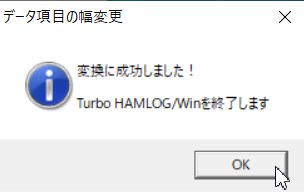一旦、TurboHAMLOG は、終了します。