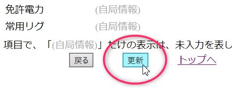 自局の情報を登録して、内容を更新するため、[ 更新 ] のボタンを操作します。