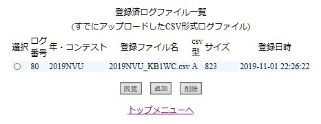 上の図では、ログ番号80で、2019年のNVU(JARL奈良県支部主催V・UHFコンテスト)のログファイルが、すでに登録されています。