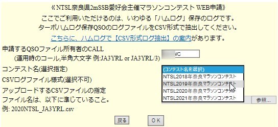 コンテスト名は、プルダウンメニューで選択していしますが、NTSLが左に表記されています。