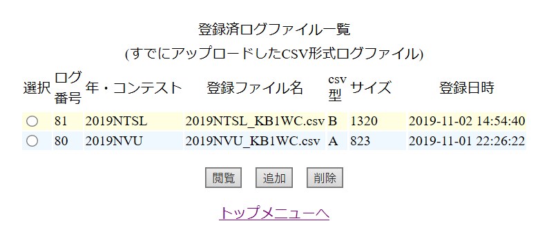 二つの種類のコンテスト用CSVログファイルが登録されていますが、NTSL用のログは、背景色が薄い黄色になっています。