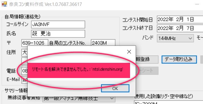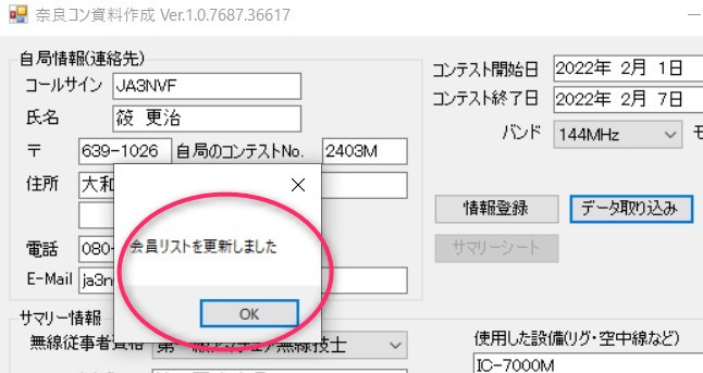 正常に、会員リストを取り込めた場合は、次のように、市郡リストも読み込んだとの表示があります。