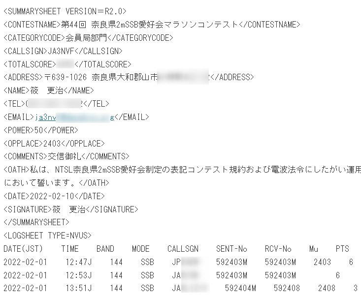 直接申請は、以下のようなJARLの電子申請様式のファイルを自動生成します。