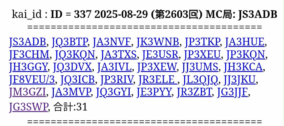 RC 第2603回 MC局: JS3ADB