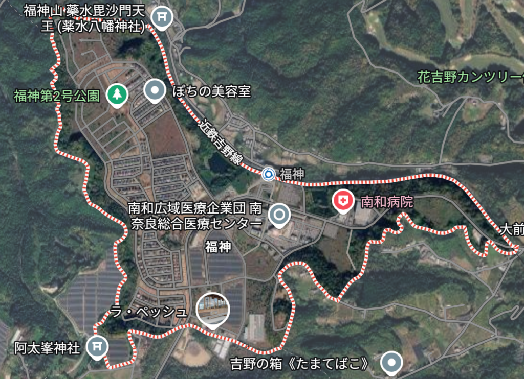 #24010 は、#2407と隣接していて、テクノパークを通過すると、吉野郡大淀町福神地域となります。ここは、金剛山や葛城山を見上げる高地となっていて、比較的開けた土地柄でもあり、県内南部の医療を総合的に支える”南奈良総合医療センター“が在ります。