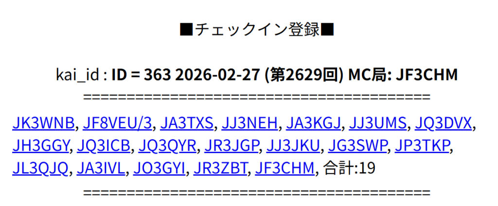 RC 第2629回 MC局: JF3CHM